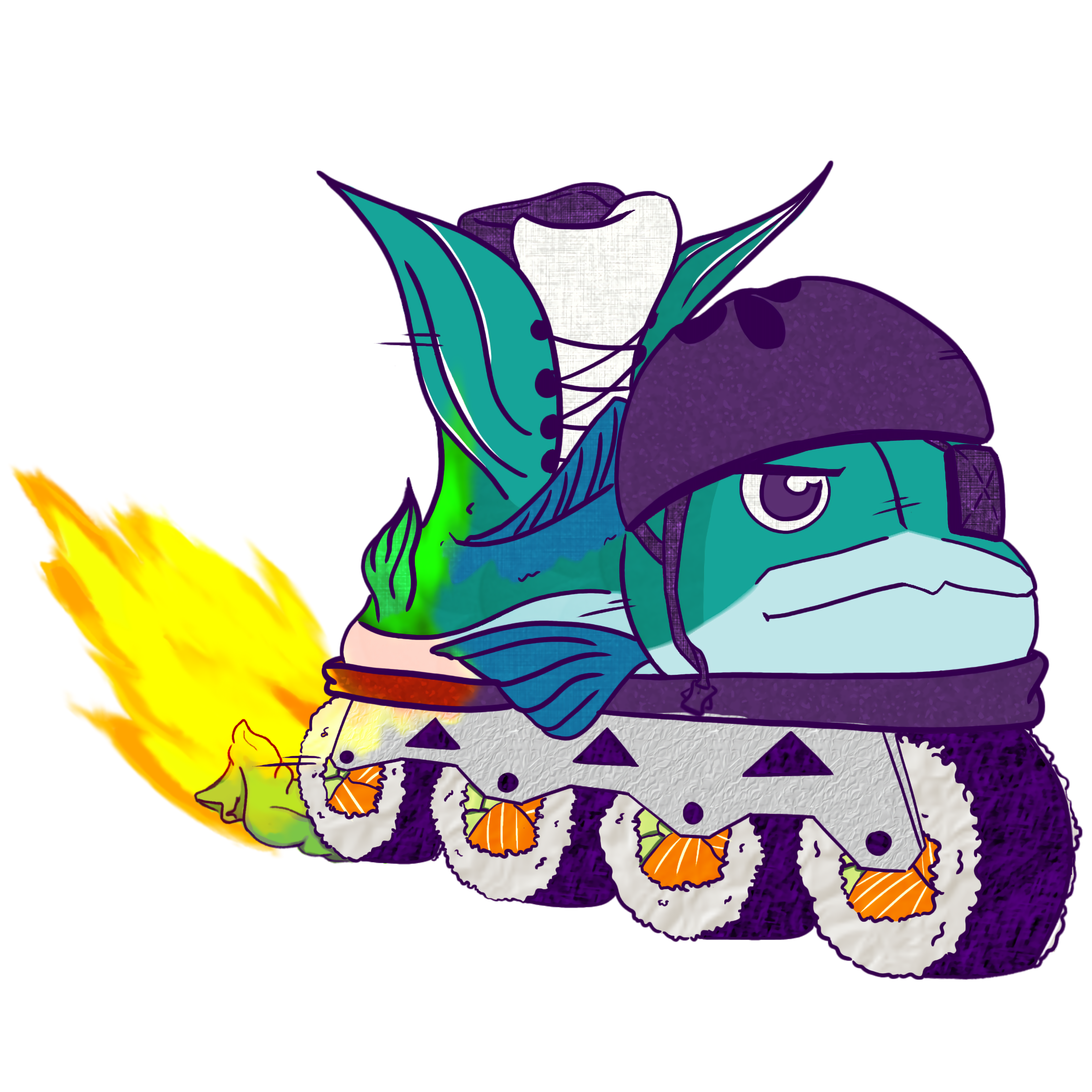 Take 6-12 fresh wheels (round, spacers included), stuffed with 12-24 bearings dipped in dino juice. You can also use LEDs (Light Emitting Dish) for extra spice. Put all of it into the frame and attach to your boot of choice. Wrap in seaweed.